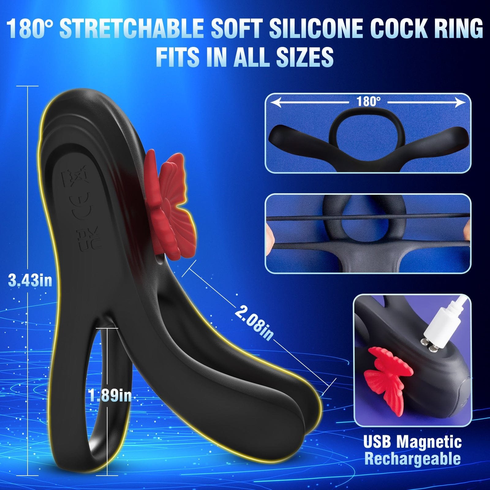 3 in 1 Butterfly Cock Ring 3 Motors 10 Modes Erection Enhancing Vibration Penis Vibrator