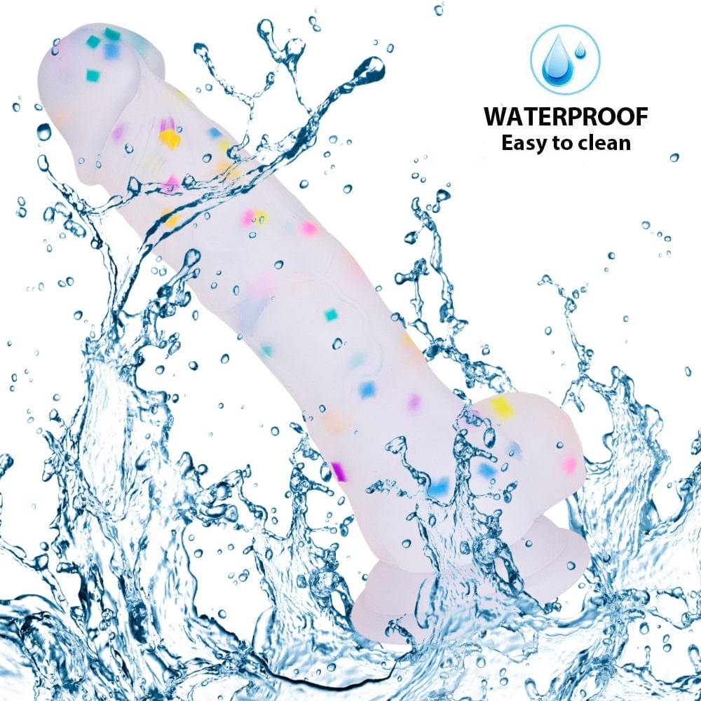 5.5‘’ Jelly Particles Rainbow Transparent Realistic Dildo With Suction Cup