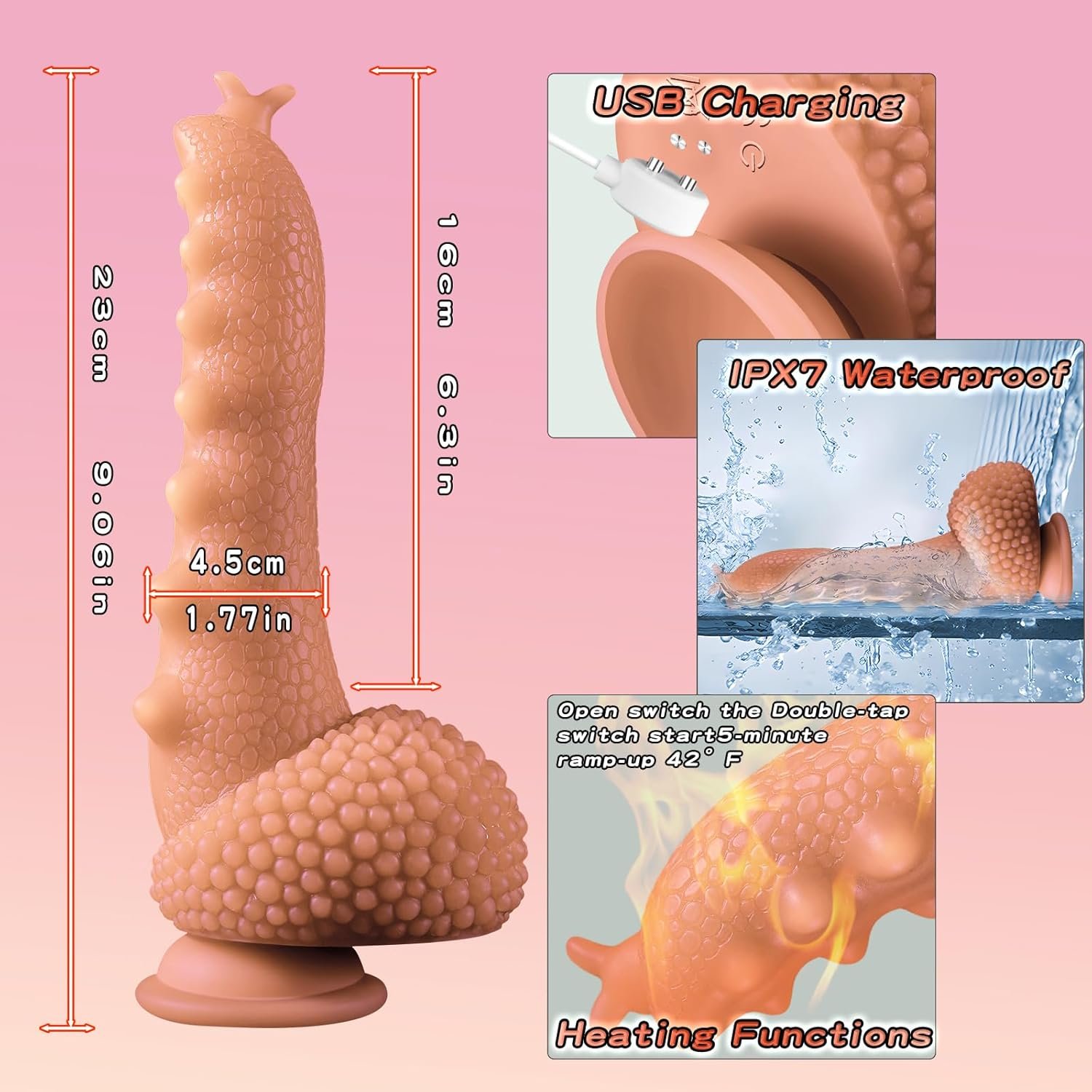 Functions: 3 – frequency Telescopic Thrusting, 9 – frequency Vibration, Heating