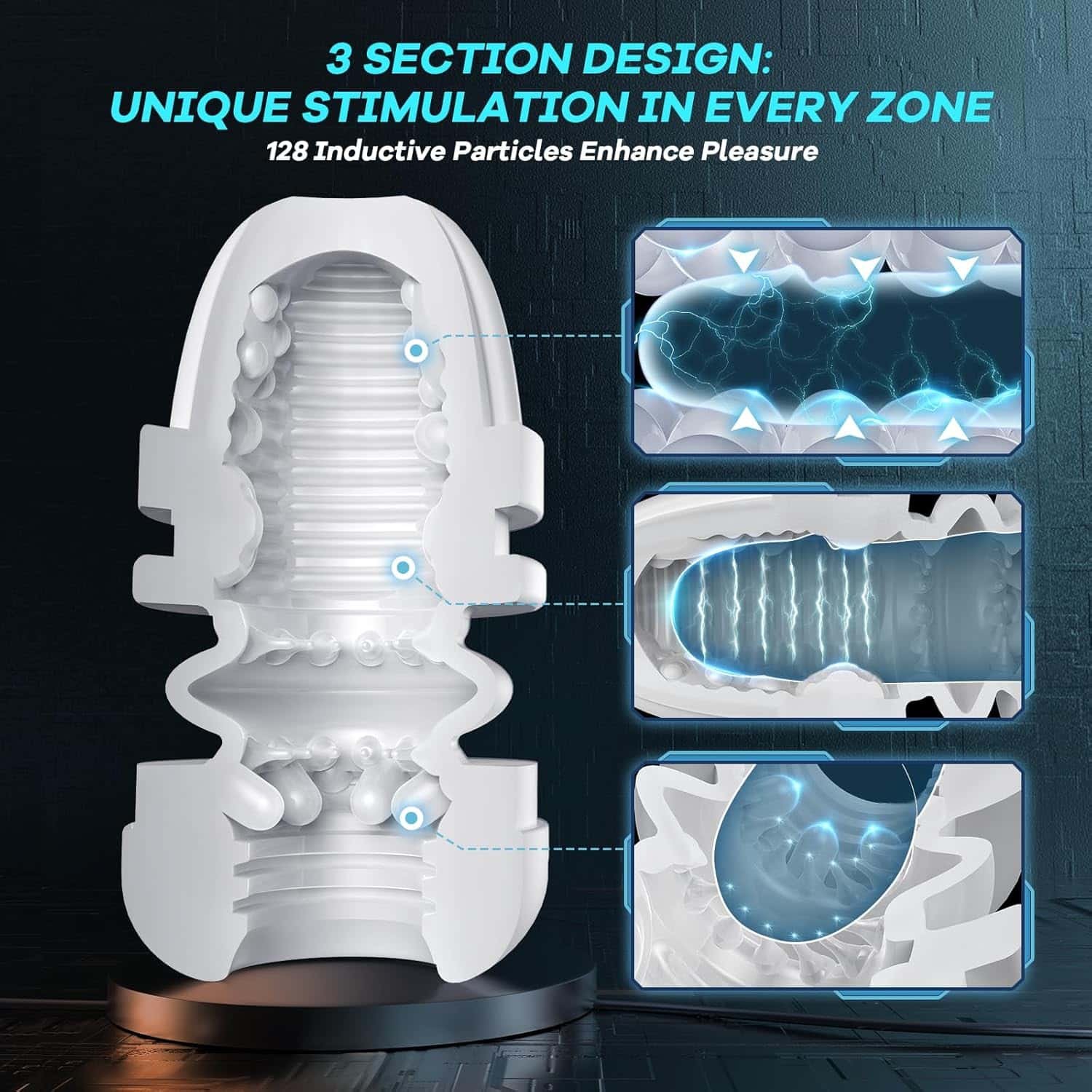 The inner texture features a one – of – a – kind design with 128 inductive particles. Raised particles and grooved textures intensify stimulation and friction, fully enveloping with each thrust. Crafted from high – quality, soft materials, it ensures safety and durability while enhancing every movement.