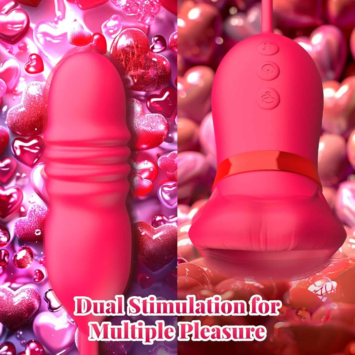 Lurevibe – Rose Female Tongue Licking Egg Jumping Telescopic Masturbation Device Double-headed Vibrating Sex Toy