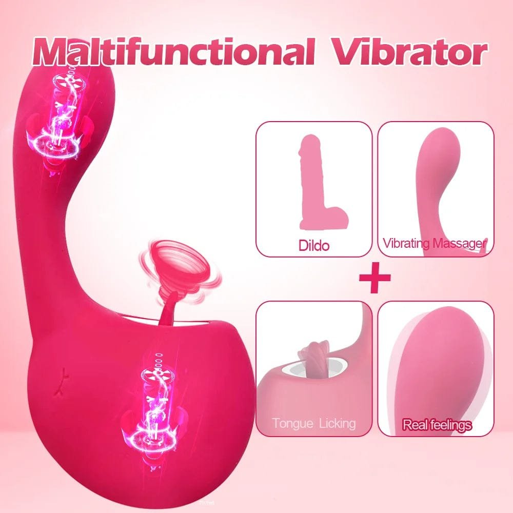 Lurevibe – Rose Female Tongue Licking Egg Jumping Telescopic Masturbation Device Double-headed Vibrating Sex Toy