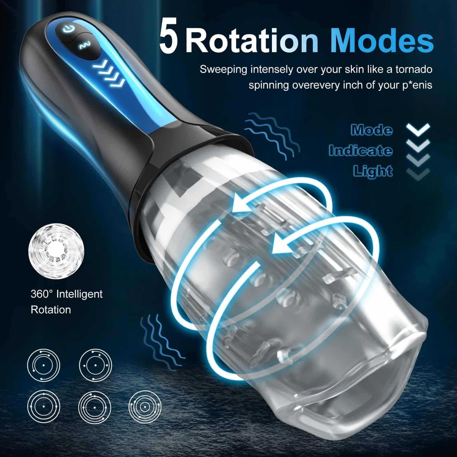 - 【5 Rotation Modes】Our male masturbator has five rotation modes, which sweep over your skin more frequently, just like a tornado rotates on every inch of your penis, providing your g*lans with more intense stimulation than the thrust mode, allowing you to explode in a huge wave of pleasure, making you feel like you are in a cloud, giving you the ultimate feeling.