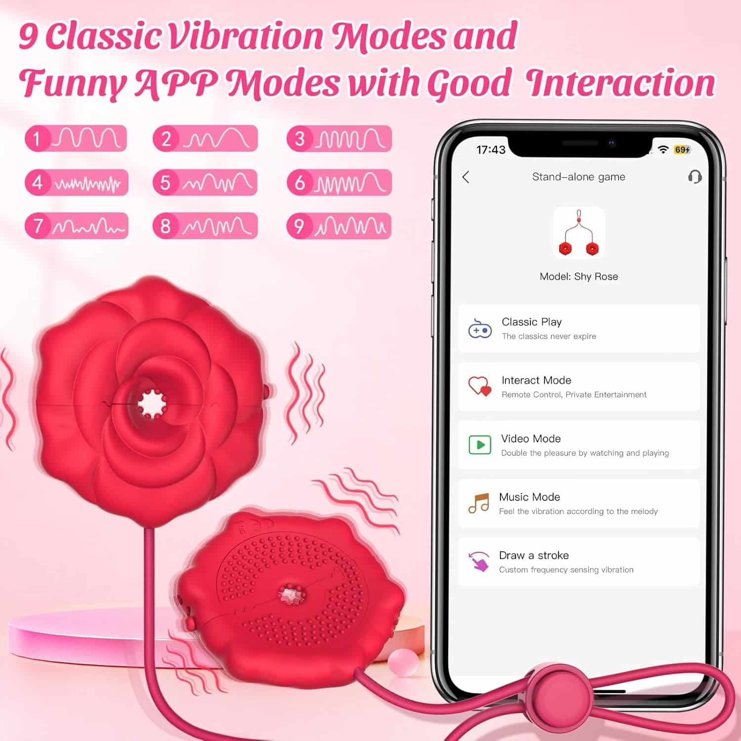 9 Vibration Modes – Offers 9 adjustable vibration patterns, allowing for a customizable and dynamic experience tailored to your preferences.