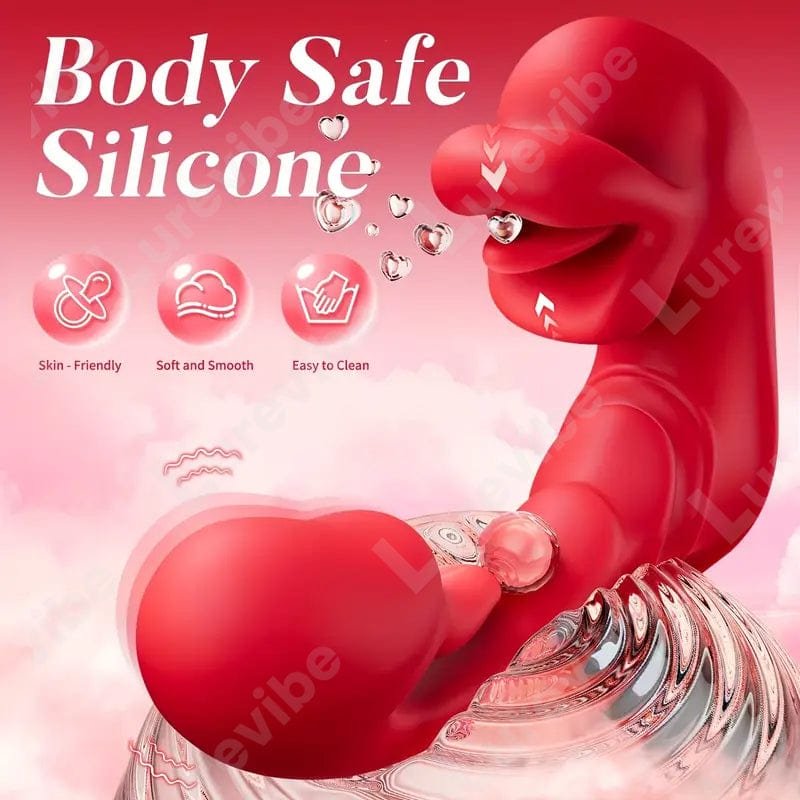 Lurevibe – D3621 Scarlet 3-in-1 Telescopic Sucking And Shocking Handle Rose Vibrator